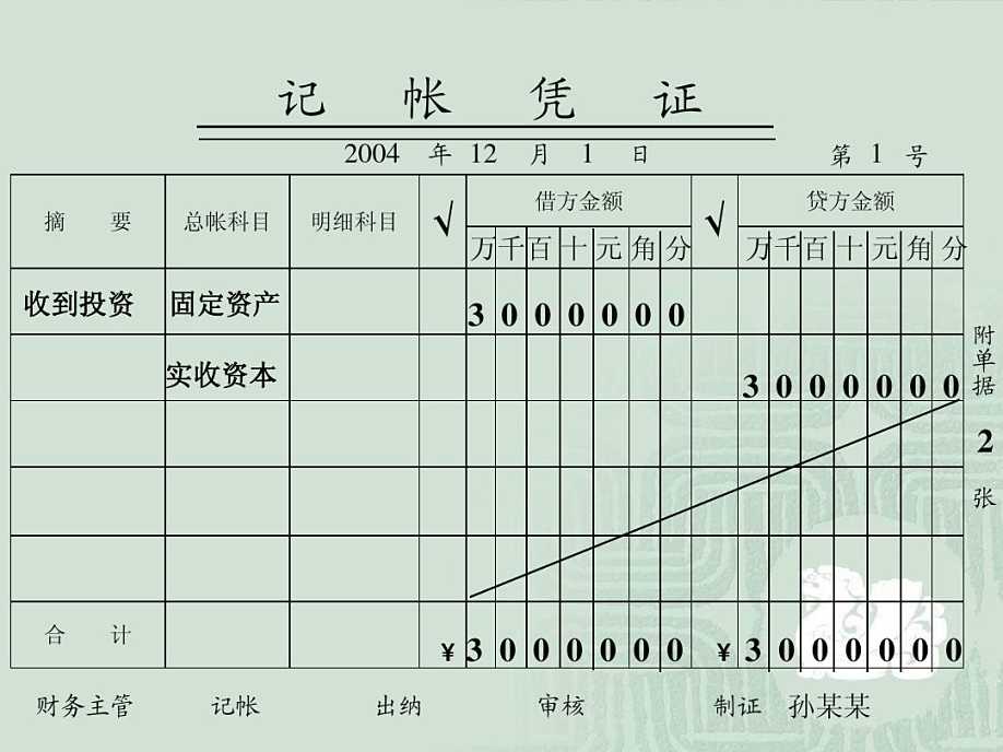 最后要注意重点:会计分录通常只是为了讲解方便而出现在书本之中,在会计实务中是很少出现会计分录的。在实际工作中,是通过填制记账凭证来实现的,那么记账凭证长啥样请往下看: