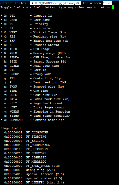 top命令执行后的结果有2部分,如上图光标以上是第一部分:为系统统计信息,光标以下是第二部分:为系统进程信息;