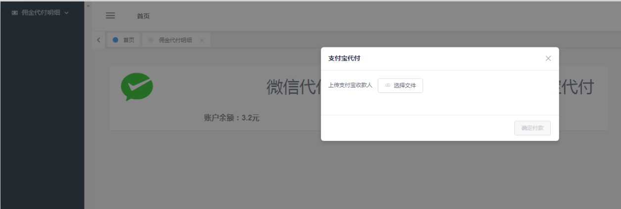 系统有提供支付宝和微信的代付模板excel,下载后填写收款账号上传上去即可:
