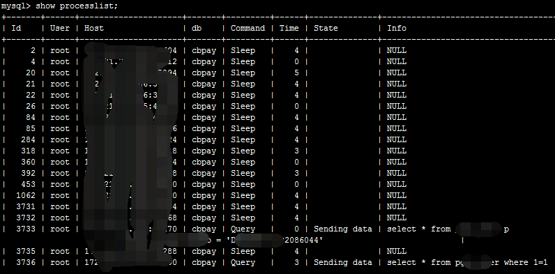 如果其中的sleep进程过多则通常代表资源未释放,如果是通过连接池,sleep状态应该恒定在一定数量范围内。