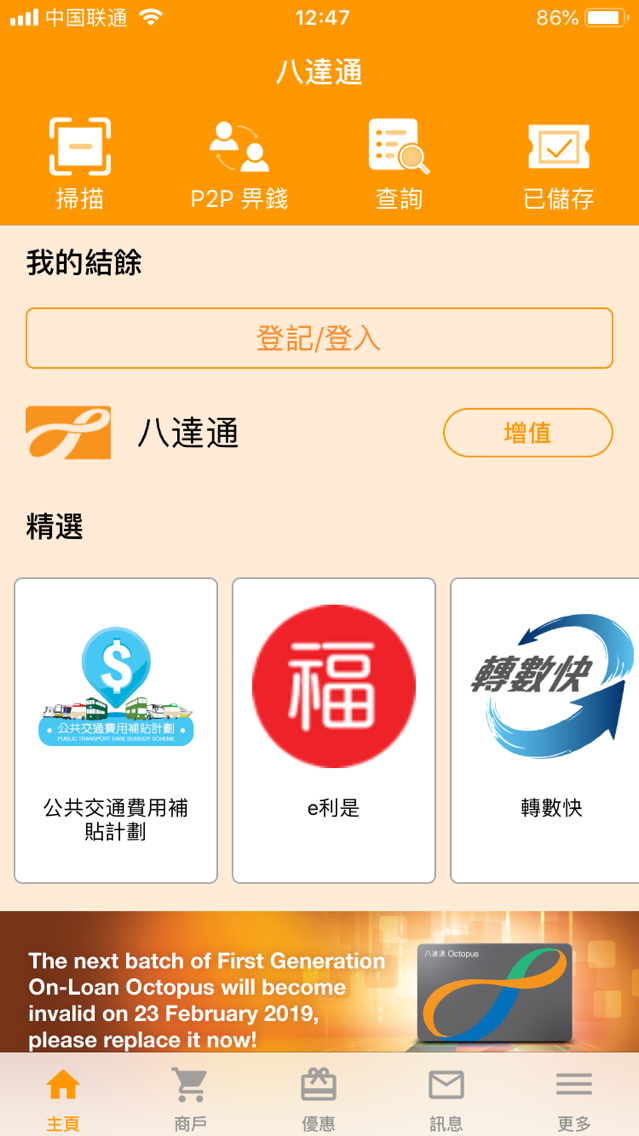- 1、使用有NFC功能的手机下载八达通app(重点:一定要有NFC功能) ,登录账户app界面如下: