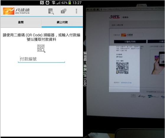 - 2、Web To App :这个是消费者在商家网站上购物选择八达通后先出现二维码,消费者使用八达通app扫码再在NFC手机背后刷八达通卡完成支付,这个很奇怪后面重点介绍一下。