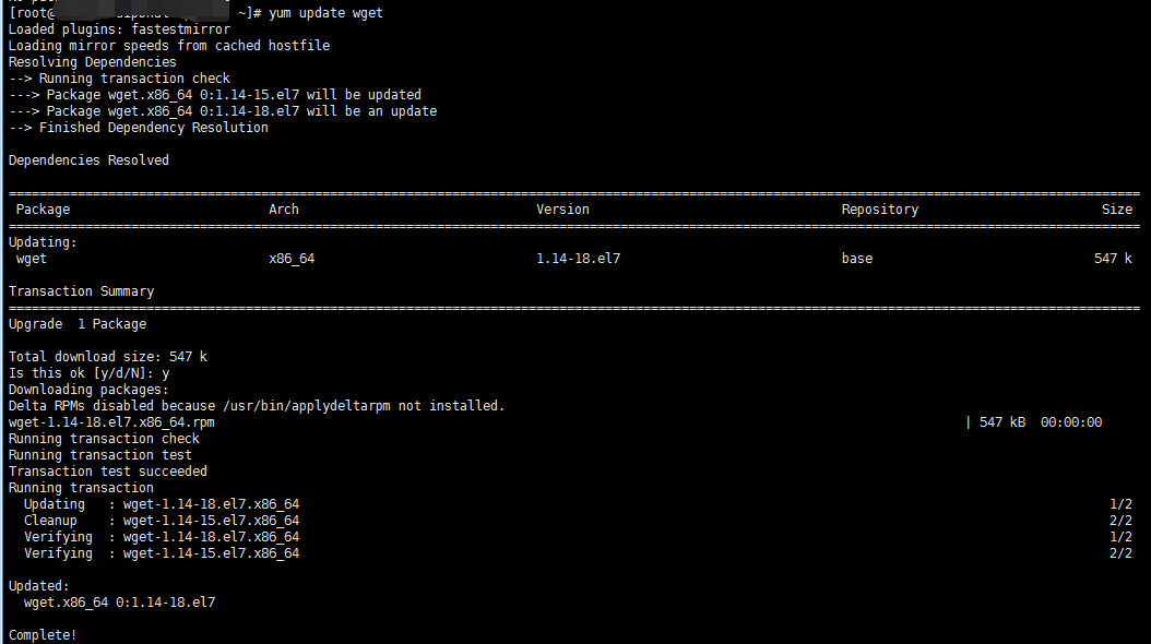 输入:yum update wget (回车)