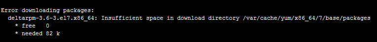 2、磁盘空间不够执行yum install deltarpm命令会报错Insufficient space in download directory /var/cache/yum/x86_64/7/epel