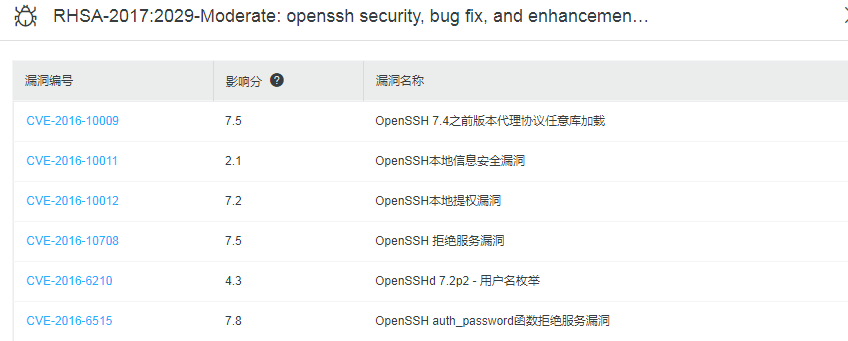 关于阿里云ECS漏洞RHSA-2017:2029-Moderate: openssh security, bug fix, and enhancemen相关信息和修复方案如下:
