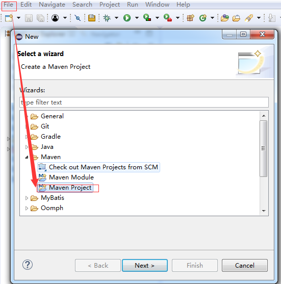 第一步、先进入到eclipse在File>new>other进入到项目选择界面(我先以父级项目为例):