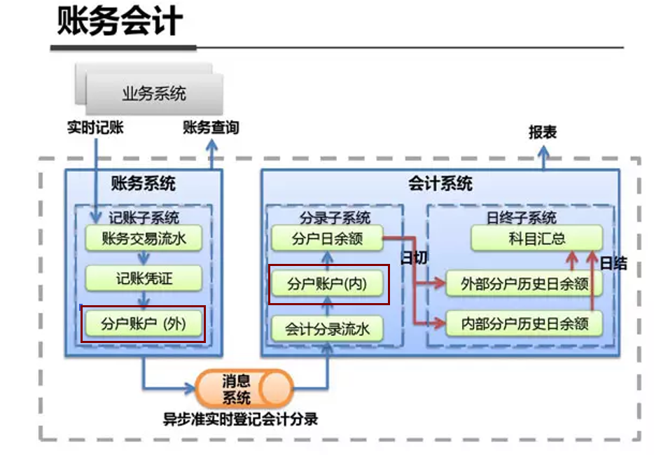 相对于分户账(外)的实时入账,分户账(内)由于涉及会计分录等过程,在并发量大的情况下,如果仍然采用实时记账方式,会造成数据库资源的锁等待、热点账户等问题,通过异步、准实时/延时/批量记账等措施,可以避免系统的性能瓶颈。