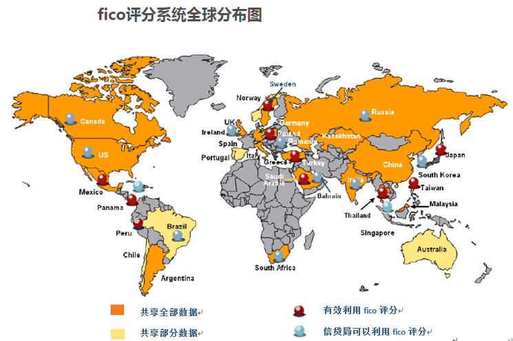 FICO是目前欧美等国应用得最广泛的一种。FICO评分系统得出的信用分数范围在300~850分之间,分数越高,说明客户的信用风险越小,它采集客户的人口统计学信息、历史贷款还款信息、历史金融交易信息、人民银行征信信息等,通过逻辑回归模型计算客户的还款能力,预测客户在未来一年违约的概率。
