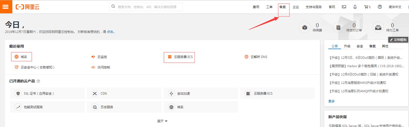 您现在的位置是:首页 > 云笔记 > 开发随笔 > 文章详情 网站备案操作指引 admin 2019-12-07 10:07:46 480人已围观 1、先需要购买云服务器和域名,我这里以阿里云为例: 详细的买买的过程我就不详细介绍了,如果有问题可以进本站的qq群咨询。 2、在通过云服务器后台申请备案服务号: 云服务器和域名购买成功后,进入阿里云控制台,如下图: 点击右上角的备案,进入到备案界面: 申请成功后,再点击申请后面的查看按钮,进入备案服务号管理界面: 复制红框中的备案服务号,再点击:去备案。另外也可以点击头部的进入备案系统进入: 3、进入备案系统: 我这里主体备案已经通过了,我现在只需要添加网站即可,我这里的操作可能和第一次备案的同学略有不同,请注意。 4、填写资料; 送大家一些阿里云的优惠券:阿里云优惠劵连接 分享到: 编辑发布时间:2019-12-07 10:07:46 标签云 自媒体类 阅读笔记 文件 我的文章 专业学习 财务相关 英语学习 开发笔记 金融授信 商城商品 开发随笔 产品设计 人工智能 人生目标 投资赚钱 支付公司 跨境供应链 管理笔记 国际物流 SEO学习 网络赚钱 营销推广 支付研究 商业模式 励志语录 抖音学习 支付体系 运维技术 生物技术 跨境电商 点击排行榜 支付行业常用名词术语解释 备付金存管银行是指可以为支付机构办理客户备付金的跨行收付业务,并负责对支付机构存放在所有备付金银行的客户备付金信息进行归集、核对与监督的备付金银行。(支付机构客 一元购模式分享 首先需要知道什么叫一元购? 就是你支付一元后获得一个购物资格,有的叫抽 CentOS服务器上mysql数据库优化过程分析(一) 最近有一套生产系统的数据库CPU老是偏高,发现闲时也在40%-60%左右,感觉很不正常,决定优化一下,在这 官方微信公众号 内有1000G各行业资料 广告栏