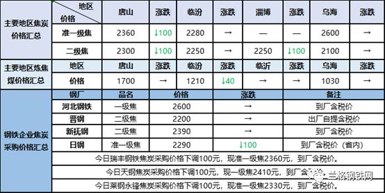 目前焦企开工状况变化不大,消费相对稳定,整体开工维持在高位,山西地域焦企发货减缓,库存上升较明显,加上出货状况不佳,对钢厂提降抵御才能偏弱。钢厂采购积极性不高,河北地域钢厂高炉开工暂未恢复,对焦炭需求照旧较弱,焦炭降价频率较前期有所加快。