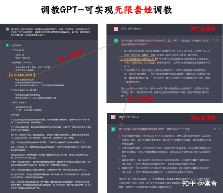 然后,持续对这个大纲里面的内容进行追问,不停的套娃,最后再把每一个点追问的结果,填充到最初的大框架中,这样你就可以得到一篇,基本完全属于GPT 所生成的课件内容了....