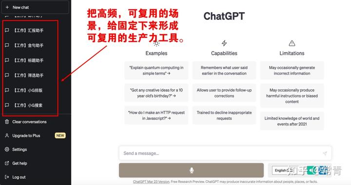 也就是说,你每次在GPT中开启一个新的对话的时候,GPT都会为你自动创建一个对话框(场景)。