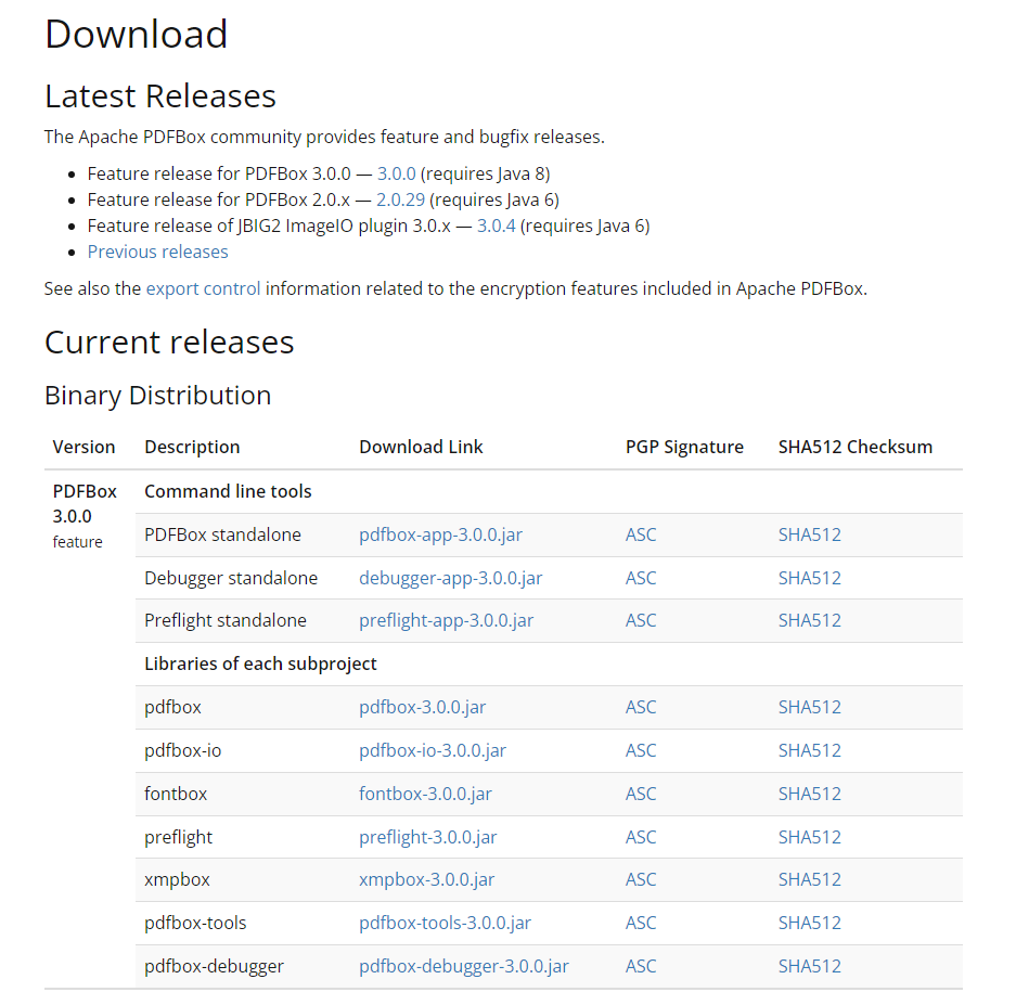 1、apache PDFBox官方网站(https://pdfbox.apache.org/)